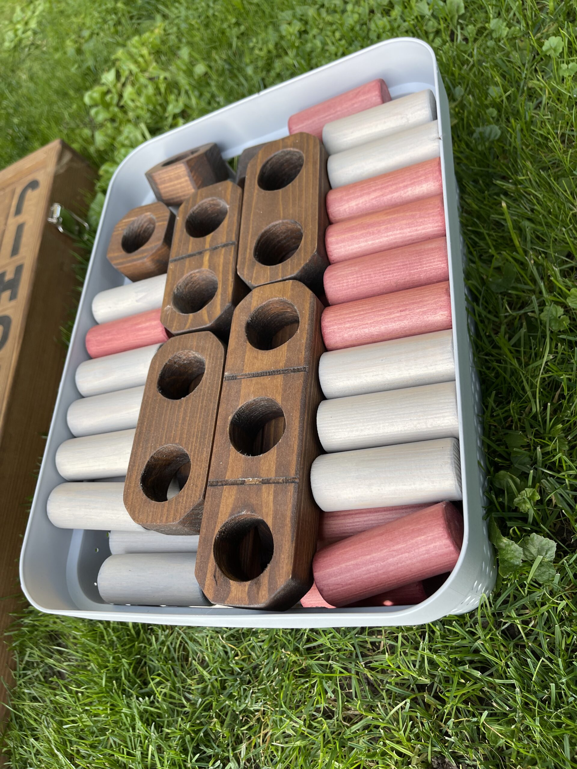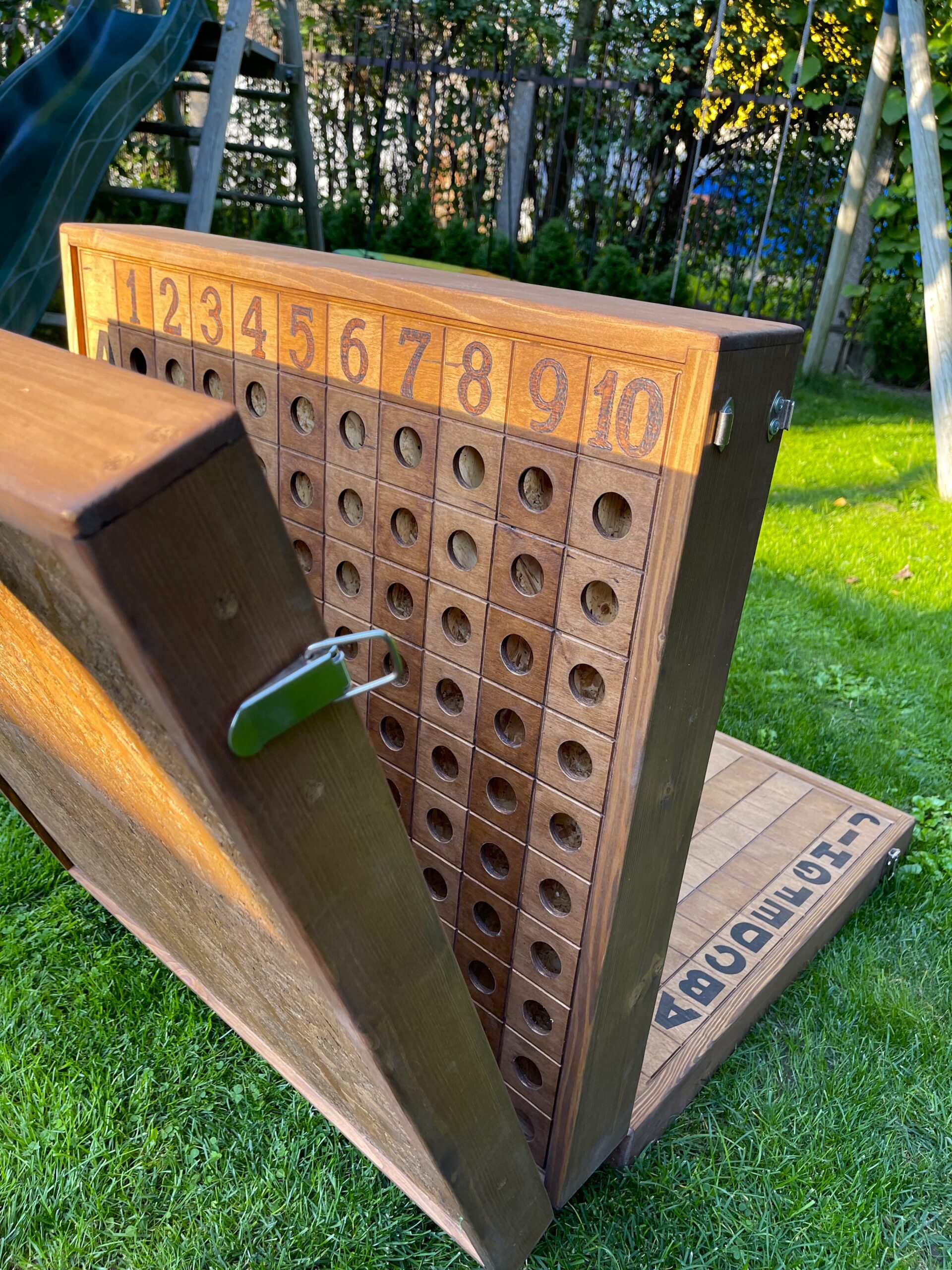 Žaidimo komplektą sudaro: žaidimo lenta, bei dvi dėžutės su reikmenimis žaidimui. Žaidimo lentos išmatavimas 180 cm x 85 cm